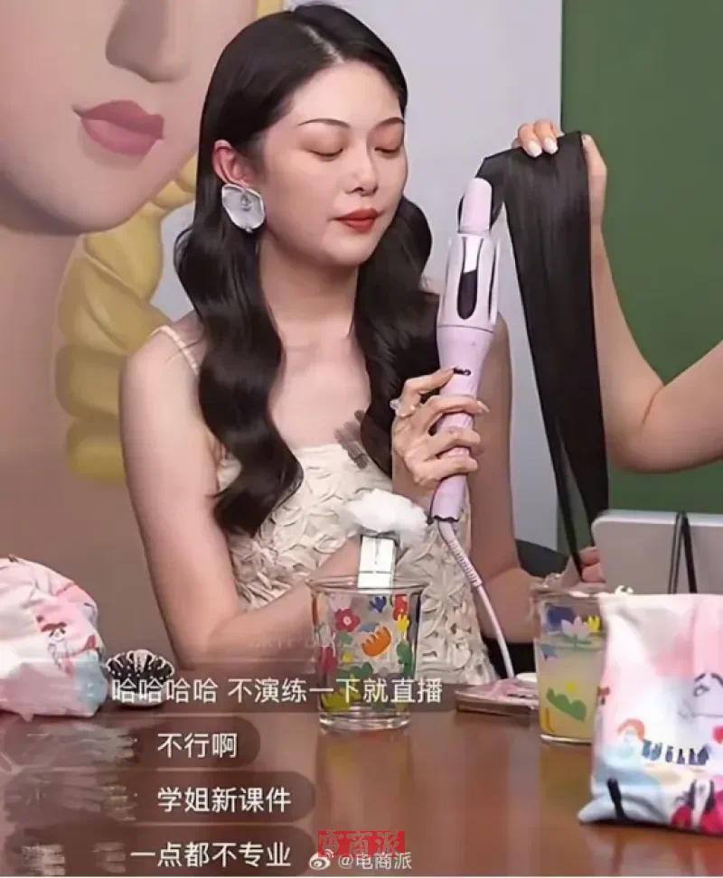 更尴尬的是,助理尝试补救时,因自身短发不符合产品使用条件(卷发棒需肩下长度),效果进一步恶化。网友还指出晚晚的操作存在技术错误:持续按住自动卷发棒的开关导致效果更差(正常应松开按键让头发自动卷入)。