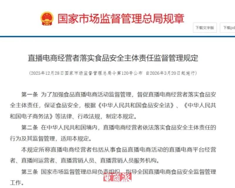 2026年3月发布的《直播电商经营者落实食品安全主体责任监督管理规定》,明确将直播间运营者、主播等纳入监管范围;2026年“清朗行动”也将继续聚焦直播短视频乱象。